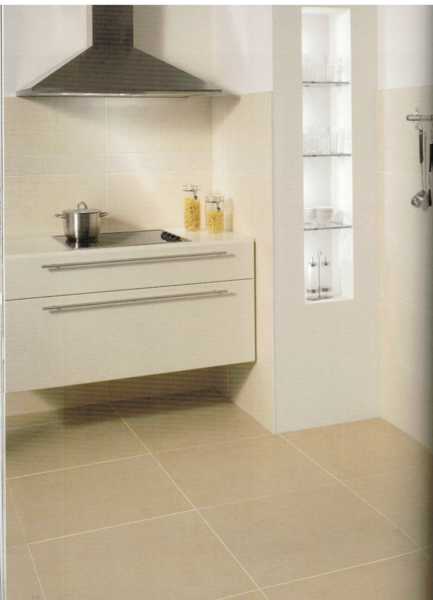 Als Wandbelag für Küchen (Küchenspiegel) ist eine großformatige Fliese besonders geeignet, da der Fugenanteil sehr gering ist.